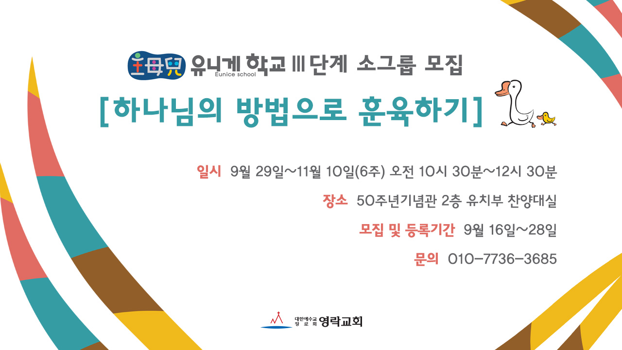• 내용 : 유니게학교 Ⅲ단계 [하나님의 방법으로 훈육하기] 소그룹 모임을 모집 합니다.